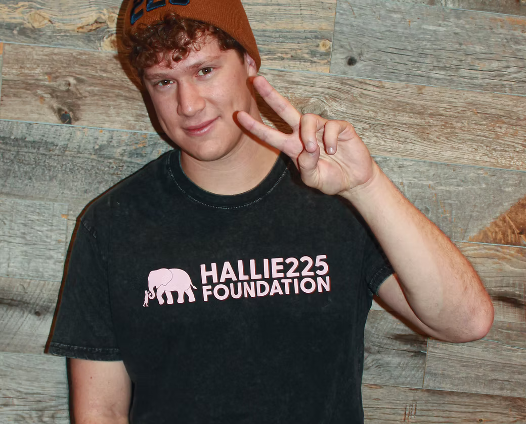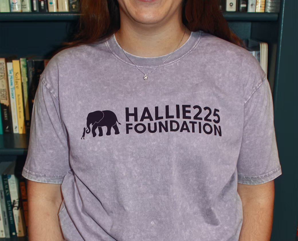 Show your support for the Hallie225 community and rep our lightweight, acid-washed lavender or black tee.
